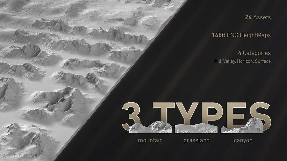ALTER ’49 – TERRAIN PACK includes just some of MANY production ready assets we’re creating for our upcoming student short film. ALL assets we create for our project, will be available for you trough Packs, each for only $1