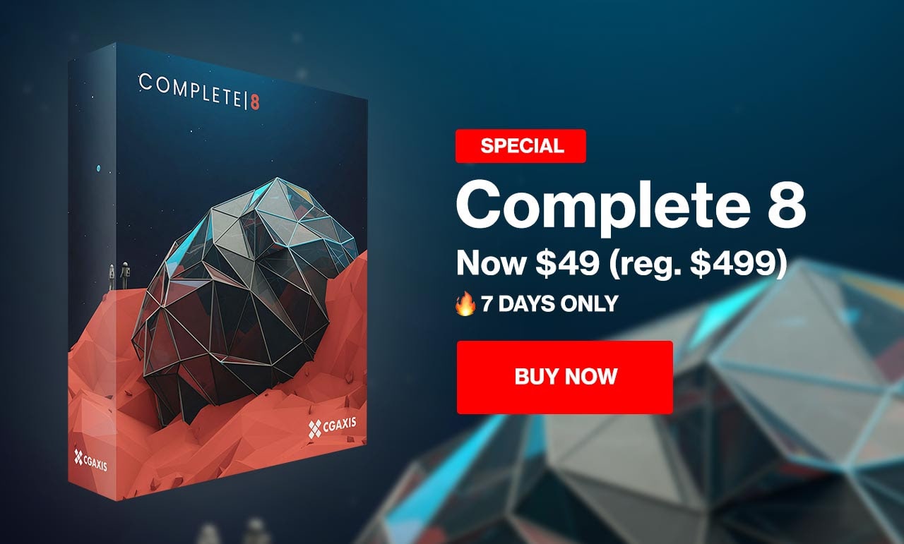 Complete 8 is an XXL collection of 3D models. It is featuring over 200 high-quality 3D models, over 900 texture maps, and 20 GB of content.