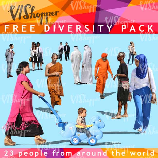 This is a free cut out people diversity pack. It includes 23 very different people from all around the world in 18 psd files.