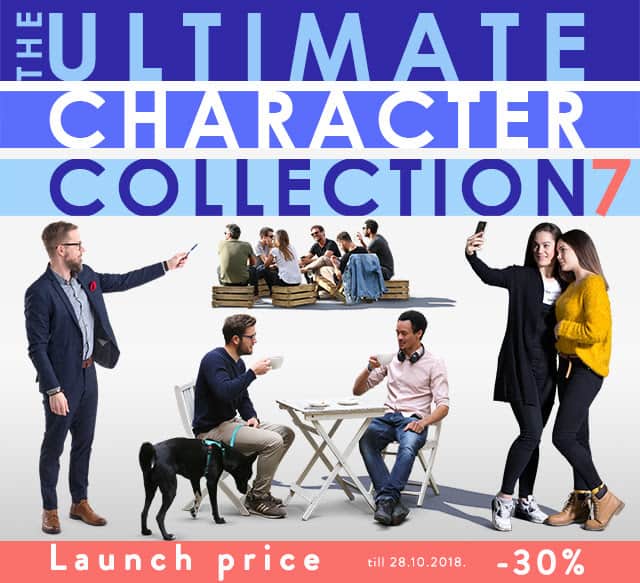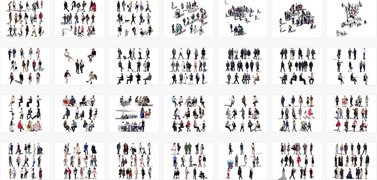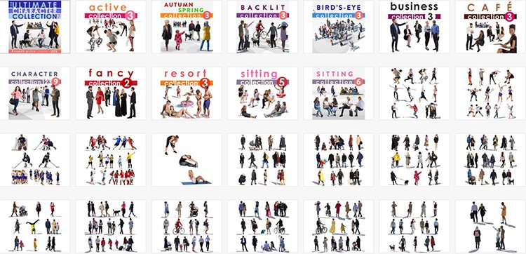 This collection of collections includes 11 bundles of different cut out people – altogether 1068 cut out people and 15 cut out cute dogs in 608 different PSD files.