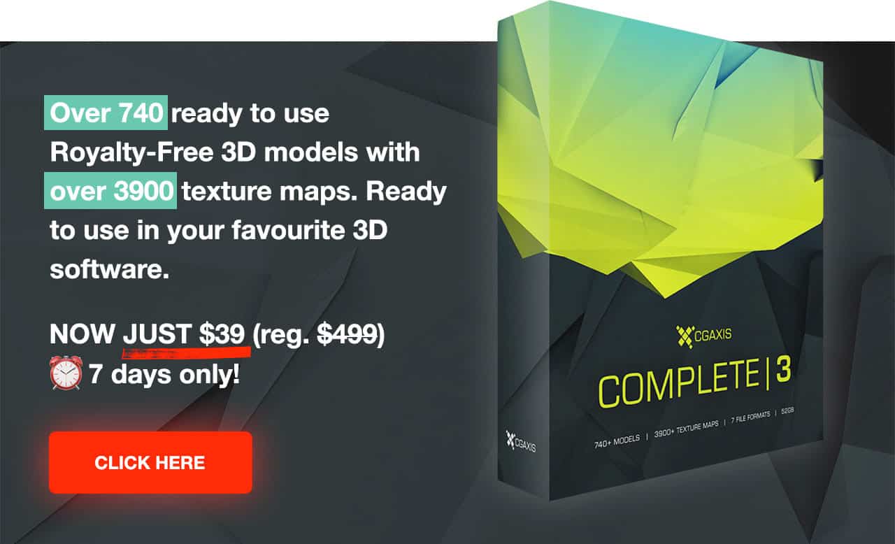 Complete 3 is a collection of over 740 ready to use Royalty-Free 3D models with 3900+ texture maps.