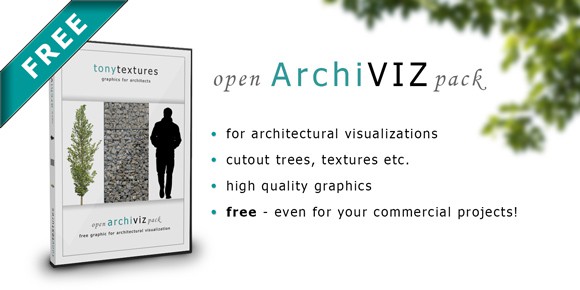 The “open ArchiVIZ pack” is a small but high quality graphic collection of ~70 ArchiVIZ graphics that should help all architects to improve their visualization results. It should encurage you to test new things and simply be creative! With this free collection we especially want to support all the students out there – Tonytextures
