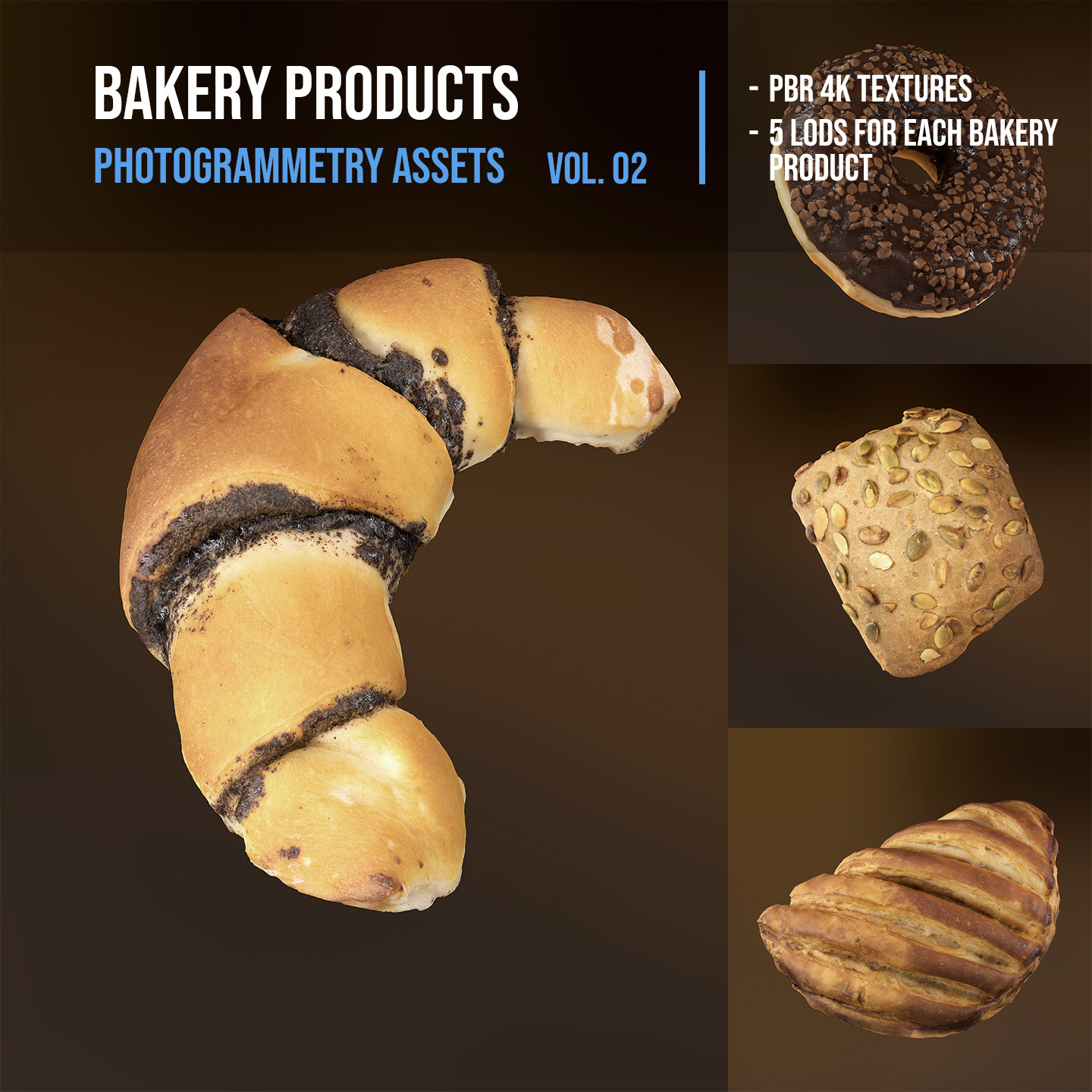 This bakery products pack contains 10 different types of bakery products, 3D models in various levels of detail and realistic 4k PBR textures created by using photogrammetry. Ideal for game assets or realistic looking renders.