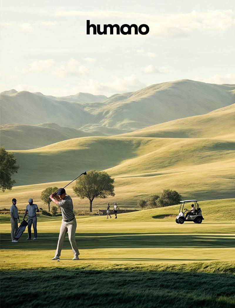 2602 | Golf Diverse features players walking, talking, standing, and even riding in a golf cart.