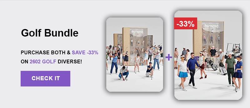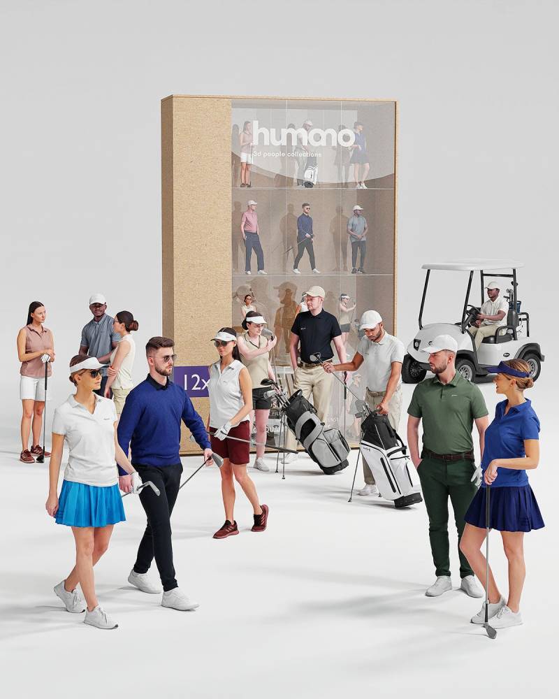 Discover 2 New Collections of 44 golf players in diverse golf poses. They are equipped with different types of clubs and all essential accessories like golf bags, clubs and balls. It is everything you need to bring a digital golf course to life!