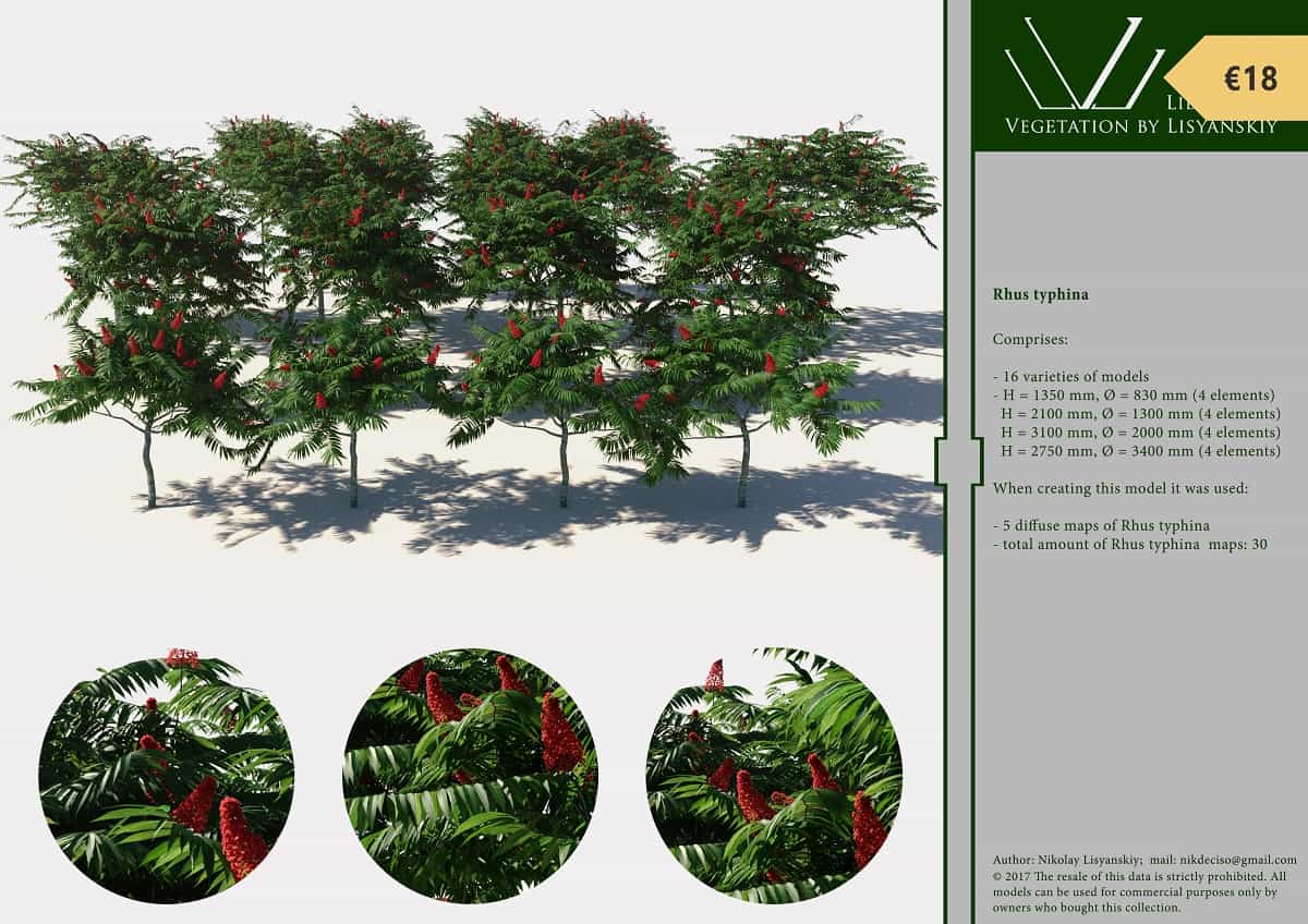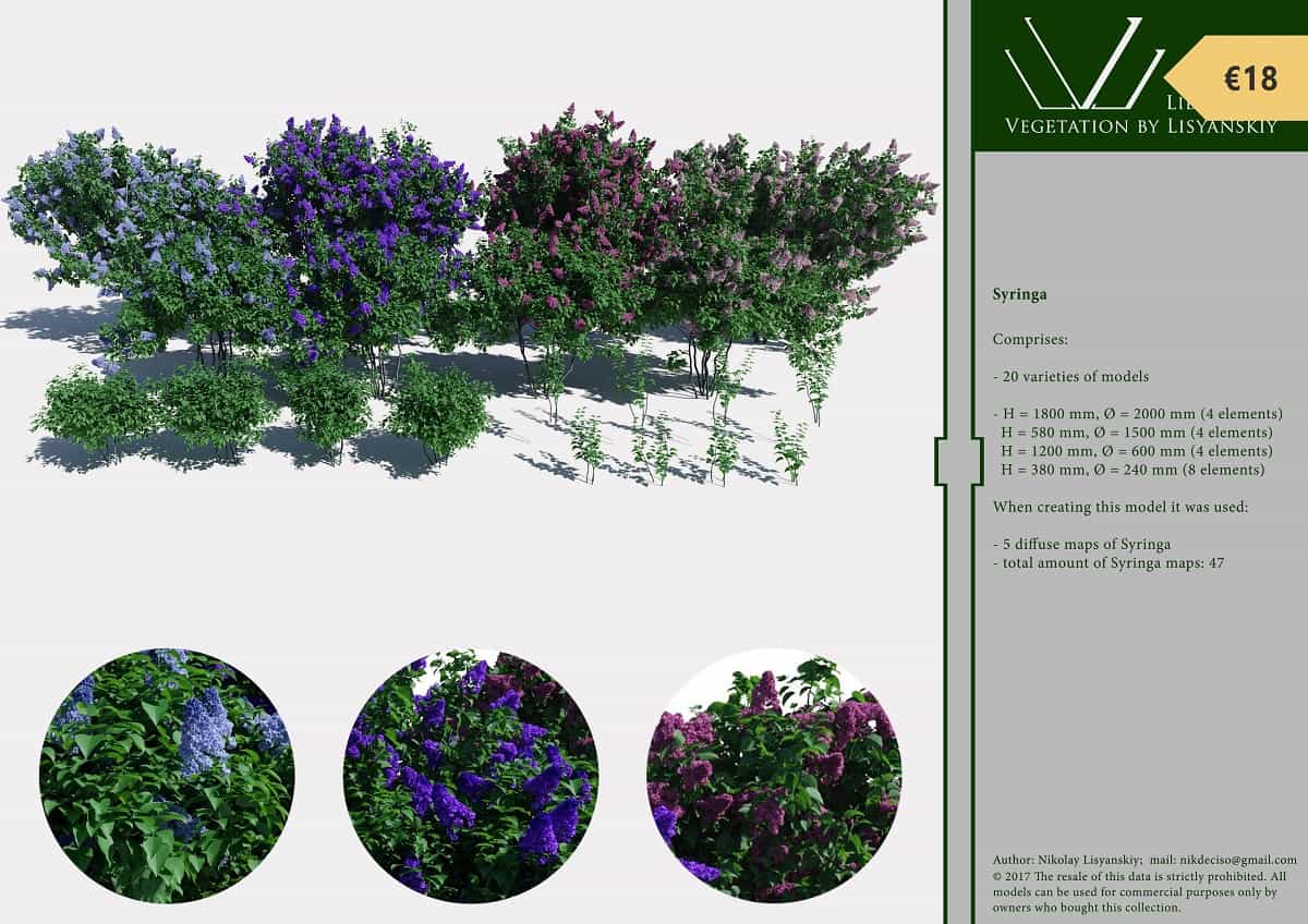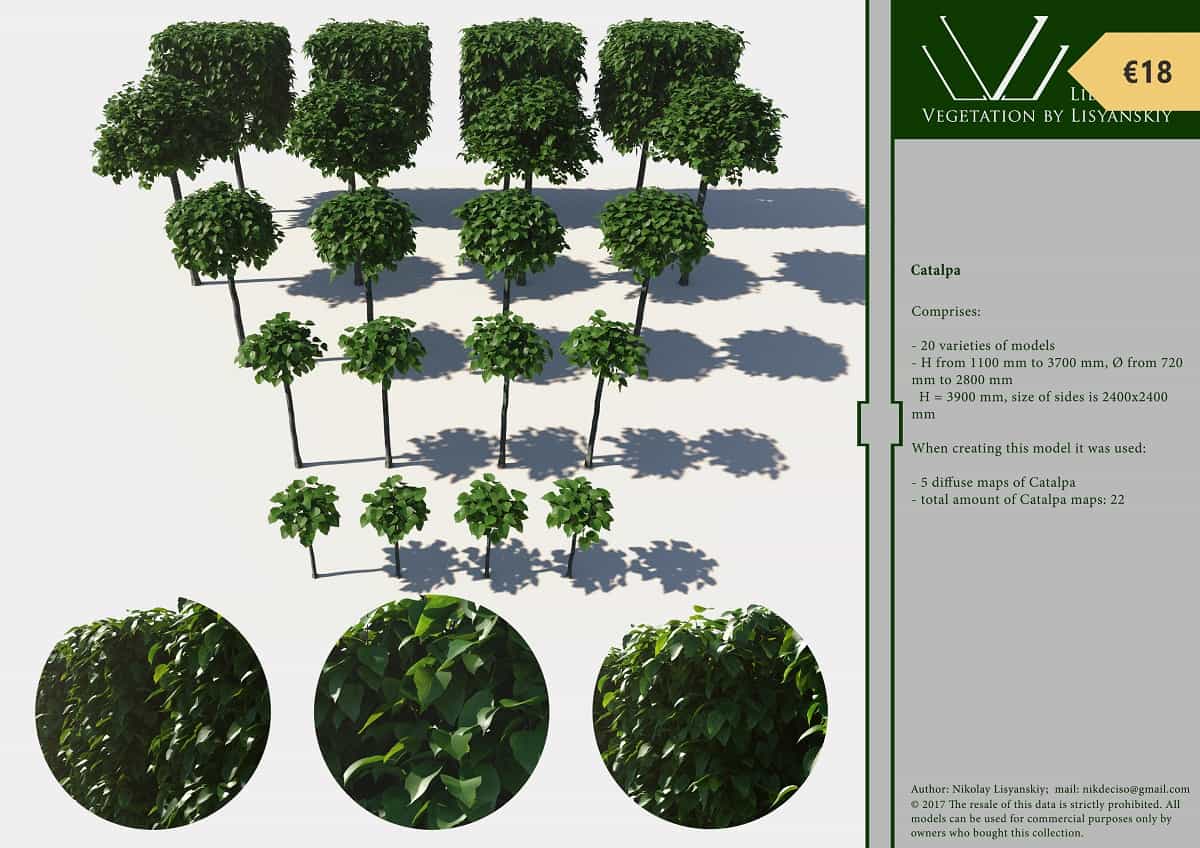 Models are presented minimum in 12 variations, and each model has from 4 up to 10 different leaf textures.