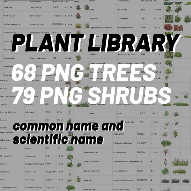 Plant Library for 68 PNG trees and 79 PNG shrubs