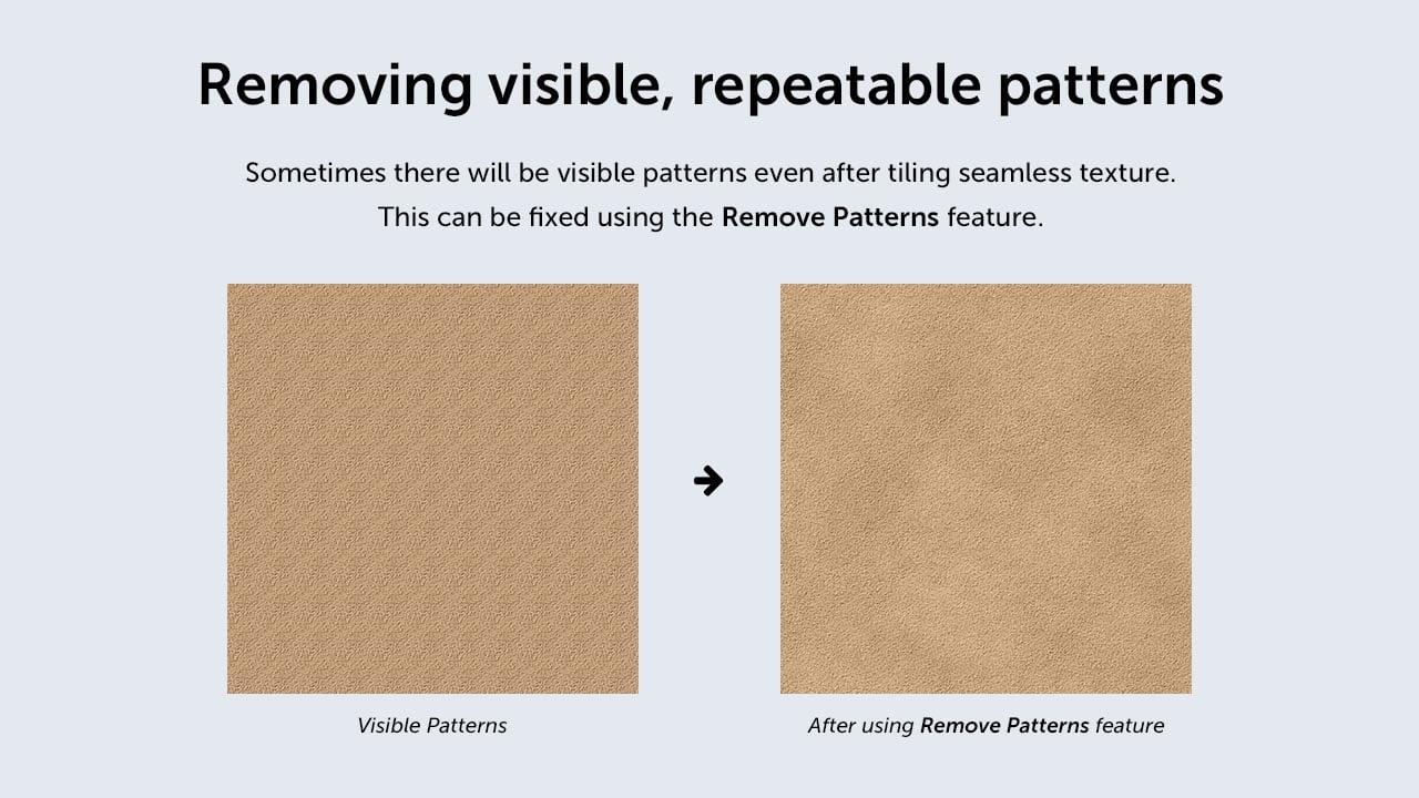 If you notice any pattern after tiling (even if you used seamless texture) you can remove it by using Remove Patterns options.